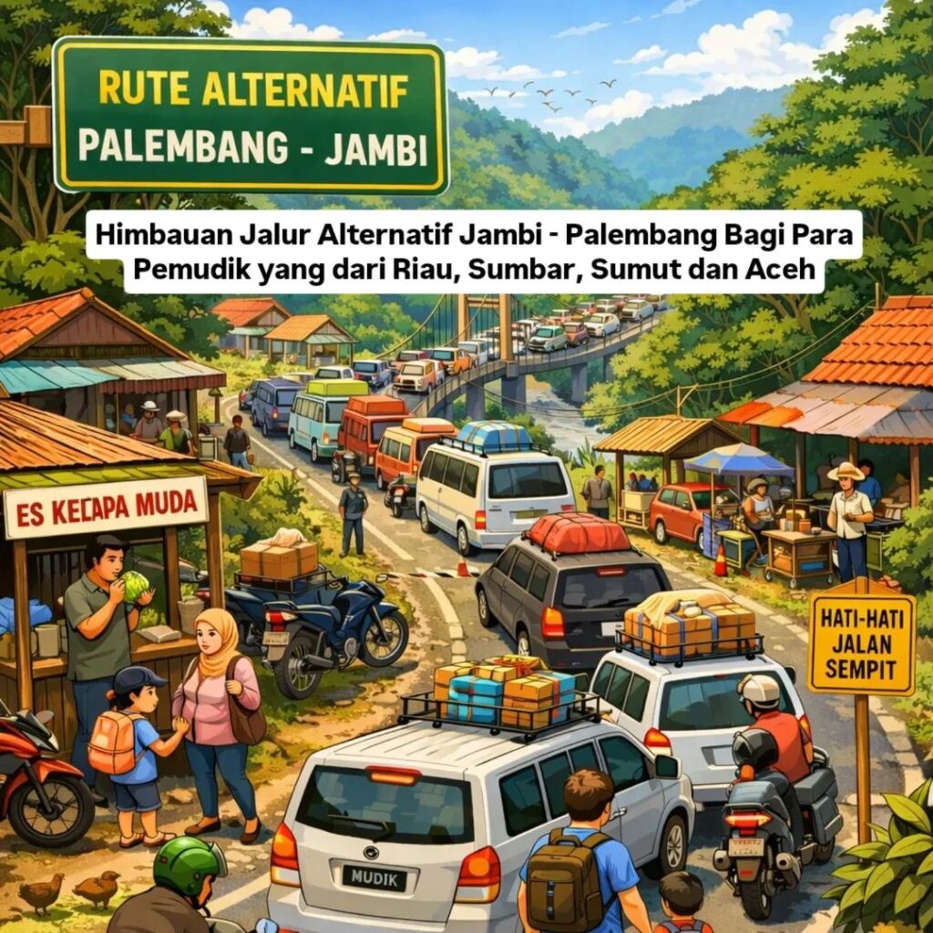 JAMBI – Guna mengantisipasi kepadatan arus lalu lintas serta menjamin kelancaran perjalanan masyarakat yang akan menuju Provinsi Sumatera Selatan yang saat ini masih mengalami macet, Dirlantas Polda Jambi, Kombes Pol Adi Benny Cahyono, S.H., S.I.K., M.Si., memberikan himbauan terkait penggunaan jalur alternatif bagi kendaraan yang menempuh rute Jambi menuju Palembang maupun sebaliknya.