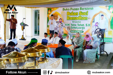 BABAT TOMAN, — Suasana hangat dan penuh kebersamaan terasa di kediaman pribadi Bupati Musi Banyuasin H M Toha Tohet SH di Desa Sungai Angit, Kecamatan Babat Toman, Sabtu (14/3/2026). Bersama Ketua TP PKK Muba Hj Patimah Toha dan keluarga, Bupati menggelar acara silaturahmi sekaligus buka puasa bersama masyarakat dalam rangka menyemarakkan Bulan Suci Ramadhan 1447 H/2026 M.